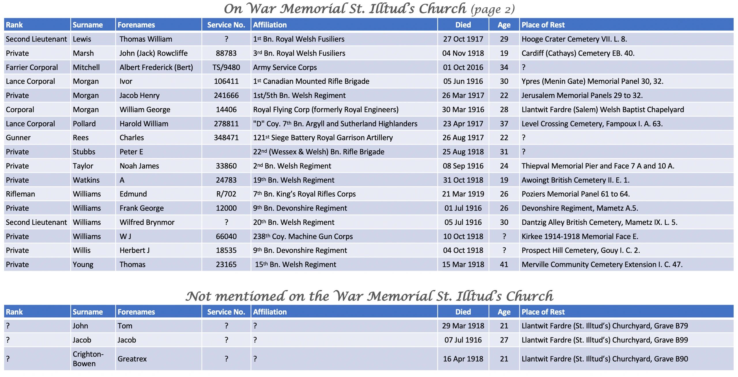 Service men killed in action 1918 and 1939-1945 not on memorial cross but mentioned on family graves.