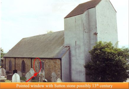 It is probable that the long walls of the nave and at least the south wall of the chancel are relatively early, perhaps of the 13th century given the internal batter to these walls and the presence of a pointed window with Sutton stone dressings in the north wall of the nave now blocked.